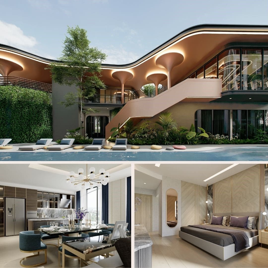Современные виллы, с бассейном, просторной террасой и большой зеленой территорией. Проект находится в 10 - 15 минутах езды на авто от пляжа, в районе с развитой инфраструктурой. Множество ресторанов, кафе, магазинов и рынков, гольф клуб. Школа и детский сад поблизости. Сдача проекта ноябрь 2023. Площадь от 425 м2 - до 567 м2